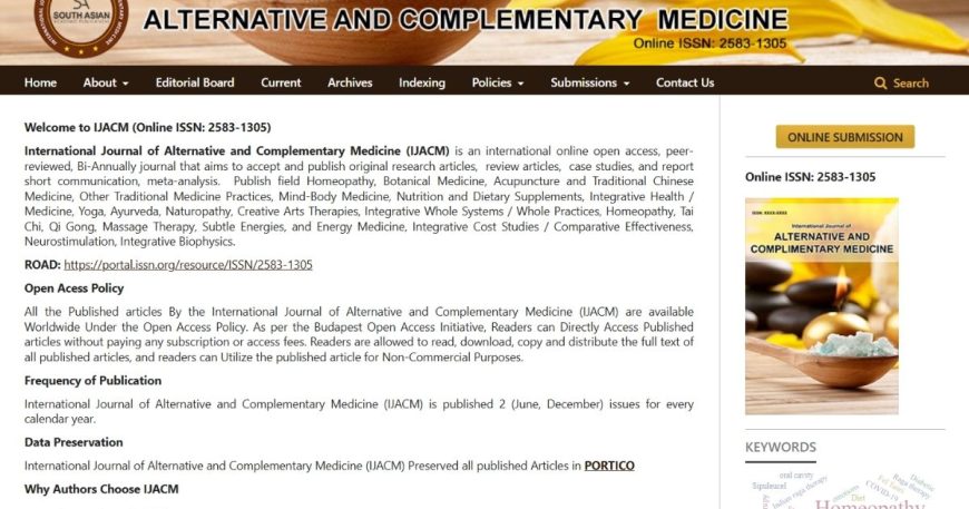 Customer : International Journal of Alternative and Complementary Medicine Category : OJS Development Online ISSN : 2583-1305 Share: International Journal of Alternative and Complementary Medicine International Journal of Alternative and Complementary Medicine is an international online open access, peer-reviewed, Bi-Annually journal aims to accept and publishing original research articles, review articles, case studies, and report short […]