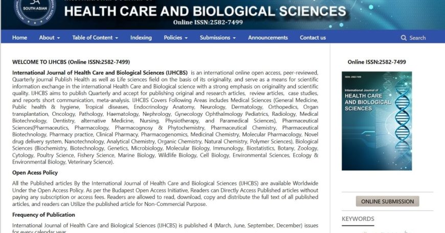 Customer : HEALTH CARE AND BIOLOGICAL SCIENCES Category : OJS Development Online ISSN : 2582-7499 Share: HEALTH CARE AND BIOLOGICAL SCIENCES International Journal of Health Care and Biological Sciences (IJHCBS) is an international online open access, peer-reviewed, quarterly journal Publish Medical and Pharmaceutical Sciences as well as Life sciences field on the basis of its originality, […]