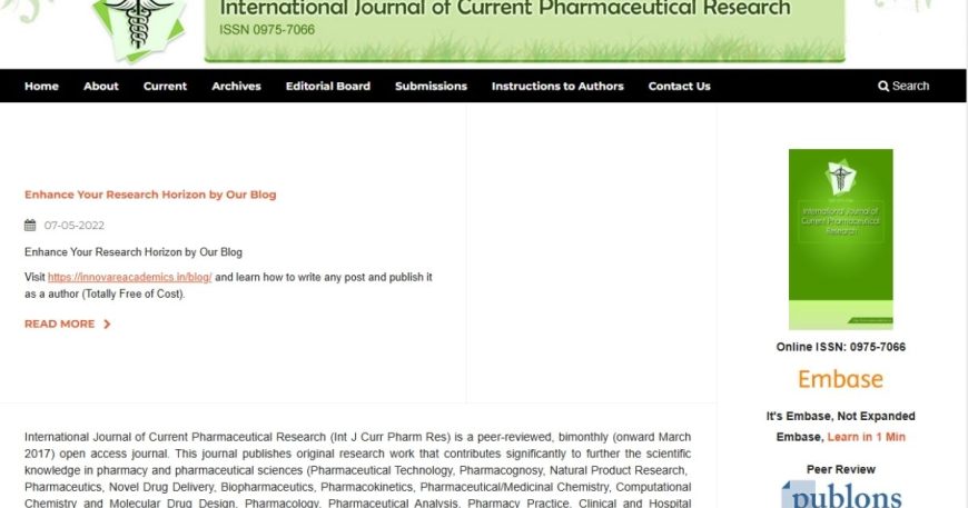 Customer : International Journal of Current Pharmaceutical Research Category : OJS Development Online ISSN : 0975-7066 Share: International Journal of Current Pharmaceutical Research International Journal of Current Pharmaceutical Research (Int J Curr Pharm Res) is a peer-reviewed, bimonthly (onward March 2017) open access journal. This journal publishes original research work that contributes significantly to further […]