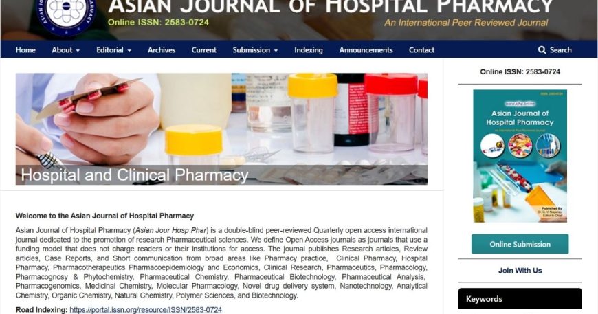 Customer : Asian Journal of Hospital Pharmacy Category : OJS Development Publisher : AJHP Publisher Online ISSN : 2583-0724 Share: Asian Journal of Hospital Pharmacy Asian Journal of Hospital Pharmacy (Asian Jour Hosp Phar) is a double-blind peer-reviewed Quarterly open access international journal dedicated to the promotion of research Pharmaceutical sciences. We define Open Access […]