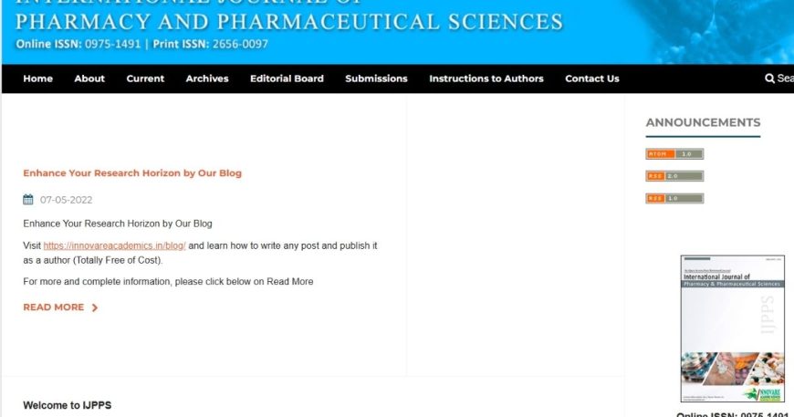 Customer : International Journal of Pharmacy and Pharmaceutical Sciences Category : OJS Development Online ISSN : 0975-1491 Print ISSN : 2656-0097 Share: International Journal of Pharmacy and Pharmaceutical Sciences International Journal of Pharmacy and Pharmaceutical Sciences (Int J Pharm Pharm Sci) is a peer-reviewed, open-access journal published monthly (April 2014). IJPPS publishes original research work […]